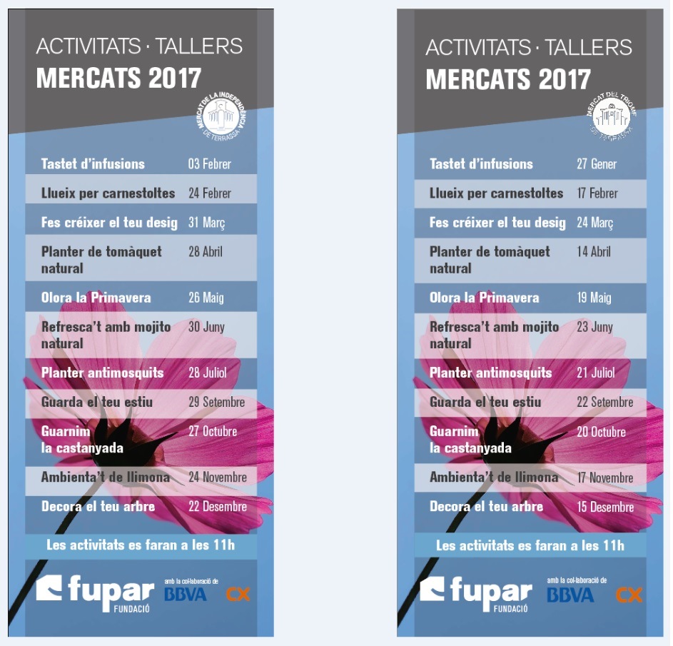 Tastet de infusions, es el nombre del primer taller del año, que se realizará el 27 de enero en el Mercado del Triunfo y el 3 de febrero en el Mercado de la Independencia. En este taller los chicos elaborarán de forma artesana diferentes tipo de infusiones que después darán a probar o bien invitarán al cliente a hacerse su propia infusión natural. Sin duda, un buen remedio para hacer frente la ola de frío polar de estos días!